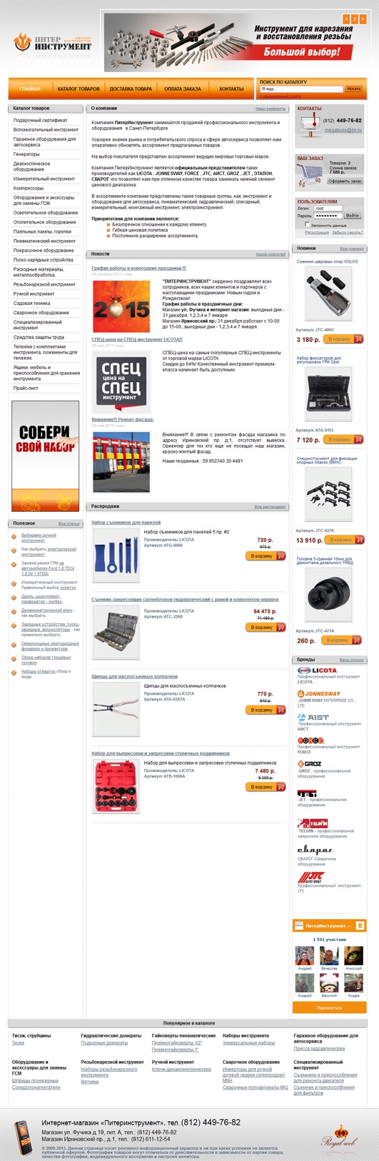 Сайт компании «ПитерИнструмент»